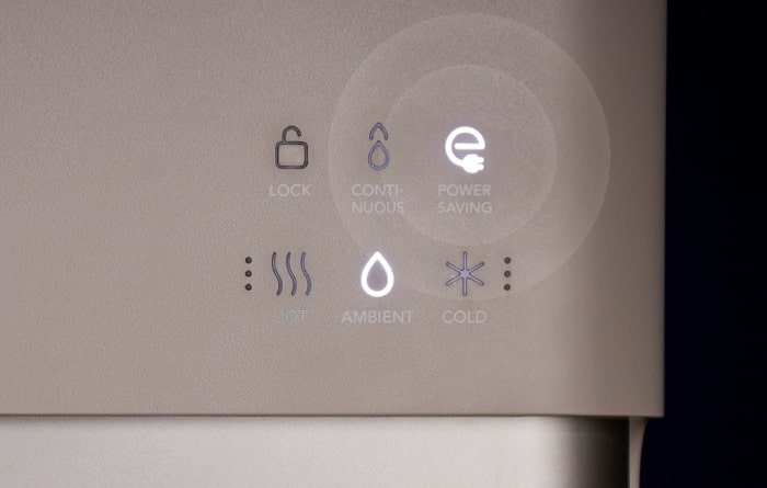 Walaupun dalam gelap, pengeluaran air atau ais menjadi lebih mudah dengan pencahayaan lembut pada dispenser, memastikan pengalaman penggunaan yang lancar.